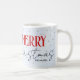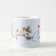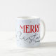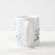 Branch with robin birds and berries Christmas holiday mug. This charming Christmas design showcases a fir branch with berries and redbreast robins on it. The background is of pale blue color. The phrase "Merry Christmas" combines script and decorative fonts. Personalize it with your own name.
