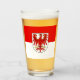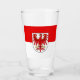 Glas mit Brandenburger Flagge, Design mit zwei rot-weißen Streifen mit dem Wappen des Staat, in der Mitte ein roter Adler dargestellt
