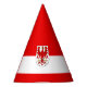 Party Hut mit Brandenburger Fahne, Design mit zwei rot-weiß-Streifen mit dem Wappen des Staat, mit einer Abbildung eines roten Adlers in der Mitte