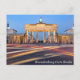 Auf dieser Postkarte ist ein nächtliches Foto des Brandenburger Tors mit Trails zu sehen. Die Karte hat eine Größe von 13,9 cm x 10,6 cm und ist auf 325 gsm Kartenvorrat mit glänzender Oberfläche aufgedruckt.
