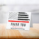 Dieses Design verfügt über eine Feuerwehrflagge mit schwarz-weißen Streifen und einen dünnen roten Streifen. Diese Dankeschön-Karte ist großartig dafür, einem Feuerwehrmann, Leutnant, Kapitän oder Chef für ihren Dienst Anerkennung zu zollen und ihnen zu danken.