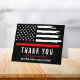 Dieses Design verfügt über eine Feuerwehrflagge mit schwarz-weißen Streifen und einen dünnen roten Streifen. Diese Dankeschön-Karte ist großartig dafür, einem Feuerwehrmann, Leutnant, Kapitän oder Chef für ihren Dienst Anerkennung zu zollen und ihnen zu danken.