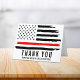 Dieses Design verfügt über eine Feuerwehrflagge mit schwarz-weißen Streifen und einen dünnen roten Streifen. Diese Dankeschön-Karte ist großartig dafür, einem Feuerwehrmann, Leutnant, Kapitän oder Chef für ihren Dienst Anerkennung zu zollen und ihnen zu danken.