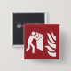Feuertuch und Flammensymbol auf rotem Hintergrund.