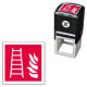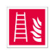 Feuerleiter und Flammensymbol auf rotem Hintergrund.