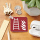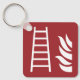 Feuerleiter und Flammensymbol auf rotem Hintergrund. Benutzerdefinierter Text auf der Rückseite.