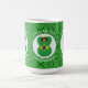 Zauberhafte Morphing-Tasse mit einem brasilianischen Engel, gekleidet in der Flagge von Brasilien, in einem weißen, Fraktal Kreis von quadratischen Quadrate. Der Kreis befindet sich auf einem grünen Fraktal mit quadratischen Quadraten. Fügen Sie einen Namen, Ferien und Jahr hinzu, um Ihre Tasse als Geschenk zu personalisieren oder Ihre Feriendekoration zu ergänzen. Schöne Weihnachtsdekoration. Design zeigt auf drei Seiten der Tasse. Verwenden Sie die Option "Design bearbeiten", um den Schriftart und/oder die Farbe des Namens, Feiertages und Jahres zu ändern.