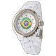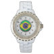 Brasilianische Flagge für Frauen Kristall White En Armbanduhr