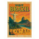 Retro Vintage Reise Poster von Brasilien. Foreground: ikonische Rio de Janeiro Sehenswürdigkeiten - Christus die Redeemer Statue stehend hoch auf dem Corcovado Berg.