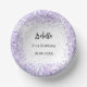 Ein weißer Hintergrund. Weiße, mit Violett und Lavendel-Konfetti dekorierte Räume. Personalisieren und fügen Sie einen Namen und ein Datum hinzu.