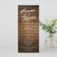 Rustikales Stallholz-Designer-Text bedruckt Rack-Karte Hochzeitsprogramm mit vollständig anpassbarem Text.