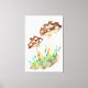 ein traditionelles Aquarellwerk mit großen braunen Pilzen, die als dekorativer Leinwand aus dem Waldboden in Aquarellen wachsen.