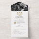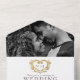 Braun und goldfarben auf weißem grafischem Goldeffekt mit Monogramm Hochzeit mit QR All-in-One Einladung. Personalisieren Sie diese abnehmbare Antwort Hochzeitseinladung mit Ihren eigenen Namen, Hochzeitsdatum, Einzelheiten zur Hochzeitsfeier, QR und fügen Sie Ihre Essensoptionen zu Ihren abnehmbaren Antworten. Einfaches, dekoratives Herz-kundenspezifisches Monogramm-Design. Andere Farben und passende Hochzeitsartikel sind erhältlich. © Original Herzkunst und Design von Sarah Trett für www.mylittleedenweddings.com auf Zazzle.