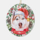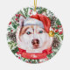 Diese raffinierte Weihnachtsschmuck-Keramik besticht durch eine Wasserfarbe eines wunderschönen Husky mit braunem und weißem Fell in einer Weihnachtsmannmütze, umgeben von Urlaubspflanzen, Pinecones und Beeren, mit einem roten Banner mit dem Namen Ihres Hauses (oder Wechsel zu Frohen Weihnachten). Sie können dieses Design vollständig personalisieren, indem Sie den Gruß und das Jahr auf der Rückseite in einem eleganten Schriftart ändern. Das ist ein stilvolles, aber preiswertes Weihnachtsschmuck, das perfekt für Husky-Liebhaber, Hundefreunde oder Liebhaber von Haustieren ist.
