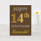Braun, Imitate Gold 14. Hochzeitstag + Name Karte