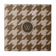 Ein klassisches Hahnentrittmuster-Design in Braun- und Bräunungstönen schafft ein lustiges und aktualisiertes mit dem letzten Akzent einer metallisch-ähnlichen Rose Gold gemischt, um ein Design zu schaffen, das wirklich Pop wird. Diese Kachel kann gerahmt werden, um ein Trivet zu erstellen oder in einem Holzdeckel Geschenkboxen platziert werden. Auch Fliesen ohne Rahmen passen in die große Geschenkboxen, um ein passendes Set zu erstellen. Passen Sie das Monogramm mit Ihrem Initial an, um es zu Ihrem eigenen zu machen.