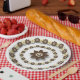 Diese hübschen Teller sind mit einem runden Rahmen aus schokoladenfarbenen und cremefarbenen Blume gestaltet. Ideal für jede Anlässe von Ansammlungen bis zu großen Feiern.
