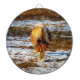 Braun und cremefarbenes Miniaturpferd im Schnee. Dartscheibe
