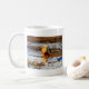 Braun und cremefarbenes Miniaturpferd im Schnee. Tasse