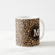 Maßgeschneiderte mit Monogramm Kaffeekaffee-Tasse mit einem schicken, gürtlichen Leopardenprint. Personalisieren Sie es mit Ihrem Namen oder Monogramm in einem Kreis-Rahmen. Klicken Sie auf Anpassen, um Schriftart und Farben zu ändern, um Ihr eigenes einzigartiges Design zu erstellen.