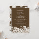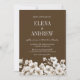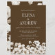 Diese elegante braune & weiße blumengeschmückte Hochzeitsveranstaltung bietet Herbst & Winter Blume. Brauner Hintergrund mit weißem Text und weißen Hochzeitsblumen. Der Hintergrund größerer weißer Blumen ist optional. Alle Texte, einschließlich der Namen, können geändert werden.