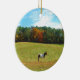 Braun- und Weißpferd, Herbstbäume, blauer Himmel Keramik Ornament
