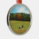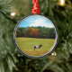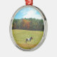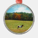 Braun- und Weißpferd, Herbstbäume, blauer Himmel Ornament Aus Metall