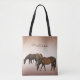Auf diese Weise können Sie den Text auf diesem Totenbeutel ganz einfach personalisieren oder entfernen. Auf einem warmen Sommertag Set auf Bronze-Hintergrund weiden braune Pferde.