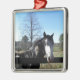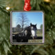 Braun & Weiß, gestrichenes Pferd, hellblauer Himme Silbernes Ornament