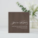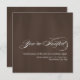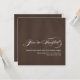 Moderne elegante Dark Brown Wedding Einladungen mit weißem Schriftzeichen und modernem weißen Schriftart für die Hochzeitseinladung Informationen. Für einen 3D-Effekt ist auf beiden Seiten ein braunes Imitat-Textur-Foto gedruckt. Design von Elke Clarke © 2010. Passen Sie mit Ihren Initialen, Namen und Hochzeitsinformation Text an. Für mehr Raffinesse, wählen Sie aus einer Vielzahl von Spezialpapieren. Auf schlichtem Whitepaper dargestellt.