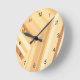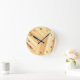 Braune beige Streifen Runde Wanduhr