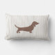 Das zeitlose Design eines braunen Wursthundes ist in einem Meer von beigen Streifen verloren. Mit diesem einzigartigen Design dekorieren Sie Ihren Zuhause-Spaß und stilvoll.