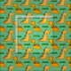 Braune Dinosaurier mit Gras auf Grün Stoff