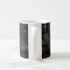 Braune getrocknete Blätter auf gemahlenen Flächen Kaffeetasse
