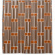 Dieser Duschvorhang hat ein geometrisches Design von fünf Linien mit zwei Boxen oben wiederholt über das Design.