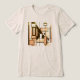 Kleinere Version. Geometrisch und Retro inspiriert nach dem Muster der Moderne des Mitteljahrhunderts. Verschiedene, dunkelbraune und hellorangefarbene Kisten mit blassgelben Farbtönen vereinen sich mit der Hintergrundfarbe des Shirts (hier in einem "Hafermehl" abgebildet), um ein abstraktes, zeitgenössisches Grafikdesign zu schaffen. Eine Reihe weiterer Shirt- und Farbstile stehen ebenfalls zur Verfügung. Dieses Design vermittelt ein "tragbares Kunstbild", das innovativ, wenn auch gedämpft und künstlerisch zugleich ist, eine kreative Ergänzung für lässige, alltägliche Kleidung (für Aktivitäten von der Arbeit/Schule über Sport bis hin zu entspannenden/sozialisierenden/laufenden Angeboten in der Stadt). Insbesondere für diejenigen, die fernarbeiten und/oder viel Zeit beim Zuhause verbringen, trägt das Shirt zu einem Gefühl bei, "gekleidet" und "zusammengesetzt" zu sein, mit einem personalisierten Stil.