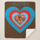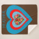 Farbenfrohe Herzen auf einem braunen Sherpa-Decken mit personalisiertem Namen.