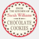 Personalisiert aus der Küche von / Backetiketten mit braunen Sternrahmen. Roter Hintergrund. Anpassbarer Name und Text.