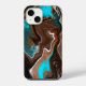 Braune und blaue Marmorflüssigkeit Kunst iPhone Hülle