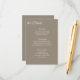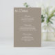 Geben Sie Hochzeits- und Empfangs-Gästen zusätzliche Informationen in Braun und Creme. Die Beilagekarte enthält Informationen zu Empfang, Transport und Unterkunft in cremefarbener Schrift auf braunem Hintergrund. Der Text kann in Details Ihrer Wahl geändert werden.
