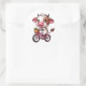 Niedlicher brauner und weißer Kuh Cartoon aufgeregt beim Reiten eines rosa Fahrrads mit einem Korb von Blume. Dieser bezaubernde Aufkleber ist in anderen Formen und Größen erhältlich, aber Sie müssen unter Umständen die Bildgröße so anpassen, dass er ungerade geformt wie ein Herz ist.