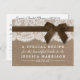 Brauner Band auf Burlap- und Spitzen-Brautparty-Re Einladungspostkarte
