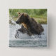Brauner Bär, der Lachs im Fluss jagt Button