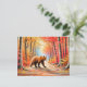 Brauner Bär im Herbst Forest Pastel Chalk Postkarte