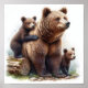 Eine schöne Darstellung eines braunen Bären und ihrer beiden Naben, die Familienwärme und die Schönheit der Natur zeigt. Die lebhaften Farben und die exquisiten Details heben die Tiere in ihrem natürlichen Lebensraum hervor.