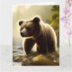 Eine große gefaltete Grußkarte für Wildtierliebhaber, mit der AI ein digitales Bild eines schönen braunen Bären in einem Bergbach erzeugt.