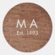 Brauner rustikaler Stein mit dem Namen Datum des J Runder Aufkleber