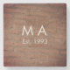 Brauner rustikaler Stein mit dem Namen Datum des J Steinuntersetzer