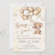 Brauner Teddybär mit Balloons Einladung zum Geburt