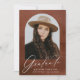 Mit dieser eleganten Ankündigung des Abschlusses in einem eleganten Bogen-Rahmen-Set in einem warmen, braunen Aquarell kündigen Sie den Meilenstein Ihres Absolventen an. "Graduate" ist in der modernen weißen Kalligrafie wunderschön geschrieben, und der Name, die Schule und das Abschluss Jahr werden unten für eine personalisierte Touch angezeigt. Die Rückseite zeigt ein stilvolles Rasterlayout mit Platz für sechs zusätzliche Fotos, sodass Sie mehr geschätzte Erinnerungen teilen können. Diese individuell gestaltbare Foto-Ankündigung ist perfekt für Highschool und Uni-Abschlüsse.